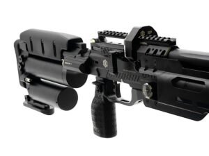 The Karma Red Panda Bench PCP Air Rifle features a high-capacity air reservoir designed for extended shooting sessions. Because the reservoir stores a large volume of compressed air, shooters can fire multiple shots without frequent refilling.