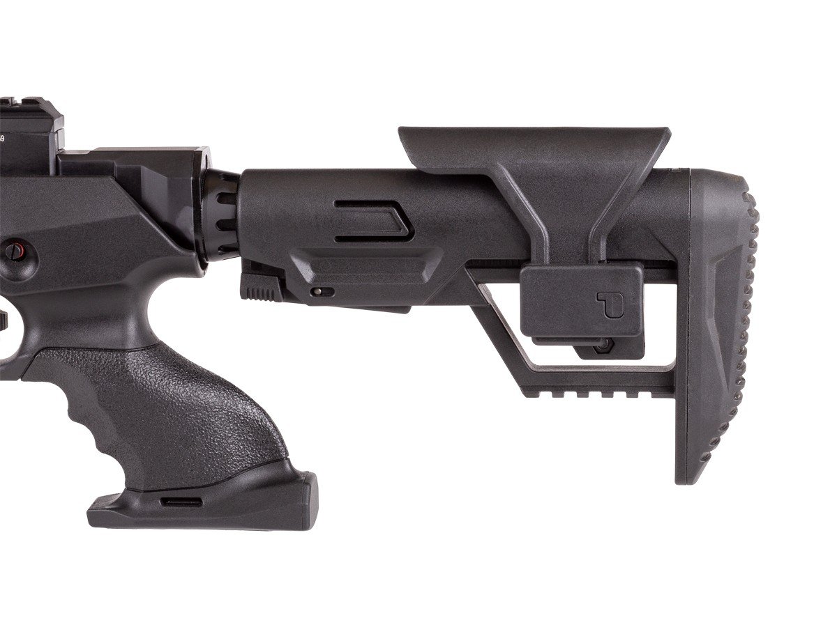 An adjustable AR-style buttstock helps you set it up for your success. The trigger and power output are both adjustable to your liking, so you can fine-tune performance. Buy your new Reximex Tormenta Lite Precharged Pneumatic Air Rifle from Airgun Depot, today.
