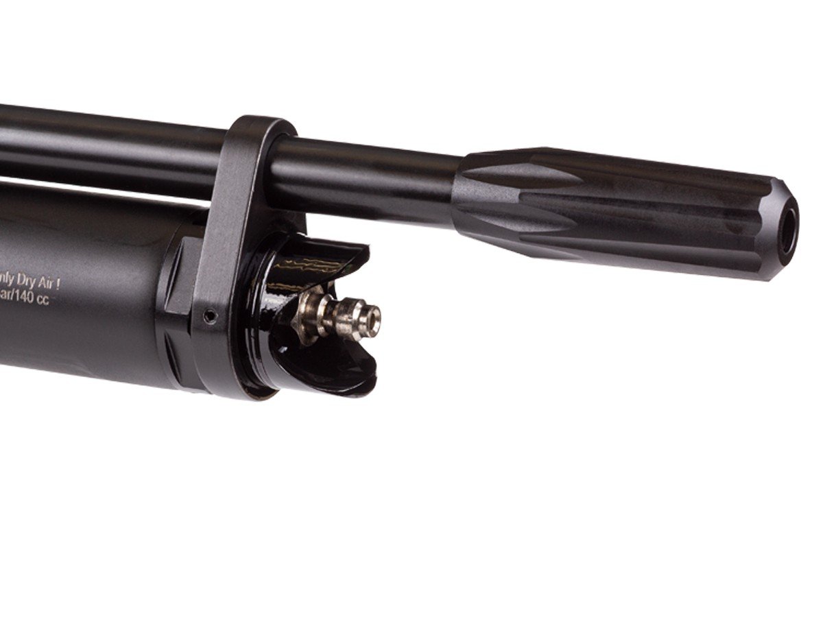 The Reximex Tormenta Lite Precharged Pneumatic Air Rifle is available in .22 or .25 caliber. It is an affordable option to let you get into PCP airguns with a 130cc volume tube and a 200 BAR fill pressure. You’ll be able to shoot about 65 shots per fill. The .22 cal pellets reach 900 FPS, and the .25 caliber pellets reach 800 FPS.