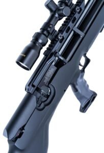 Furthermore, the stock design includes a balanced cheek piece and shoulder support area. These elements help stabilize the rifle against the shooter’s body during aiming. As a result, the shooter can maintain a steady sight picture while preparing for each shot.